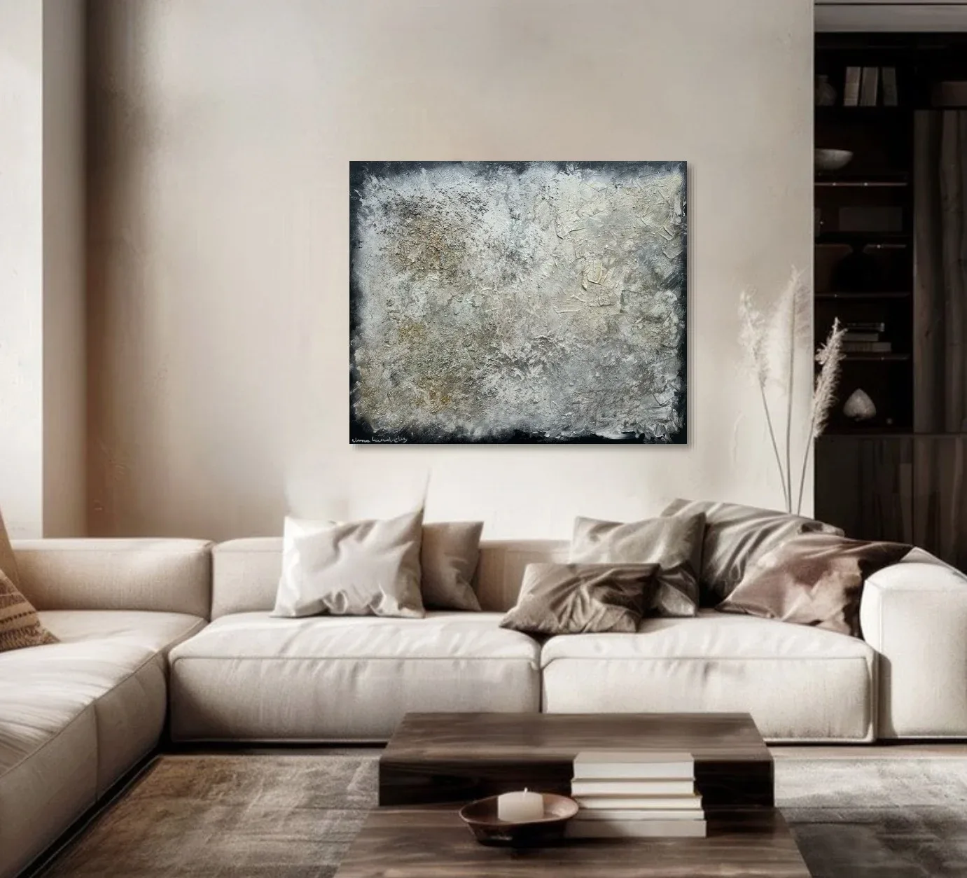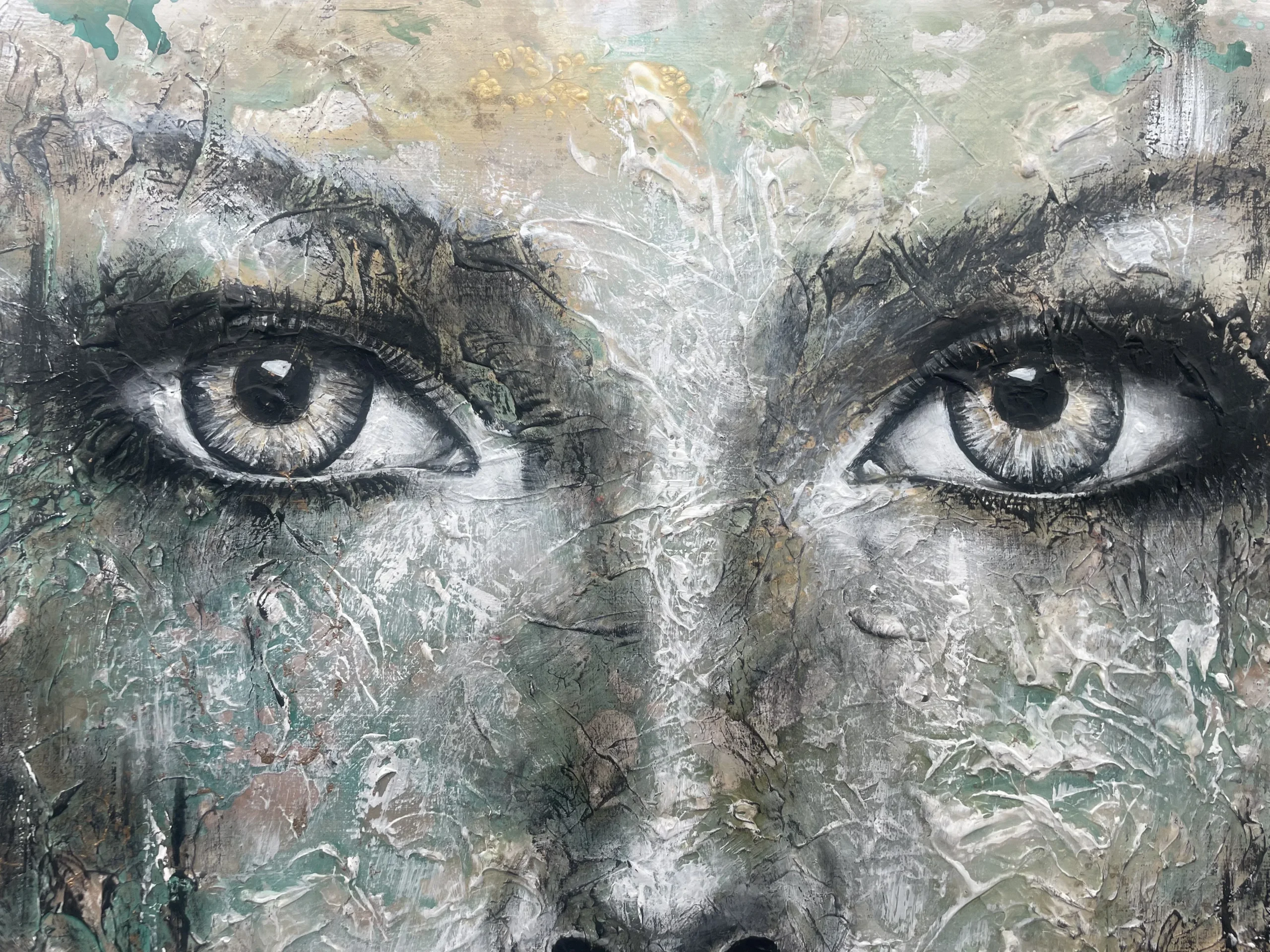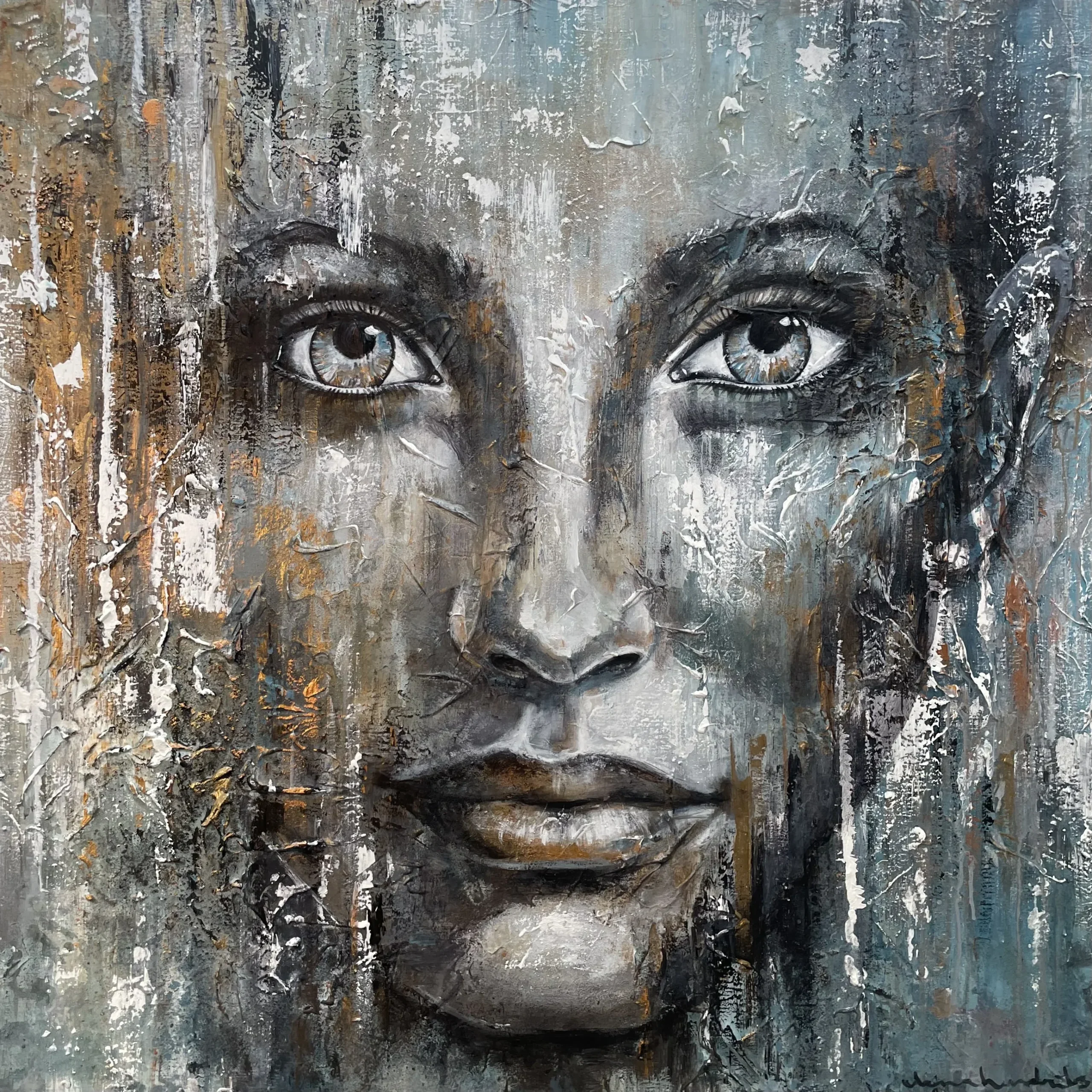 It is hard to show the layered structure of my paintings on an image- therefor have a look at my insta page for more close ups. Best to pass by and see and feel the art yourself. All my works are painted on Linen, mounted on an aluminium frame, varnished, sides integrated, signed and ready to hang.